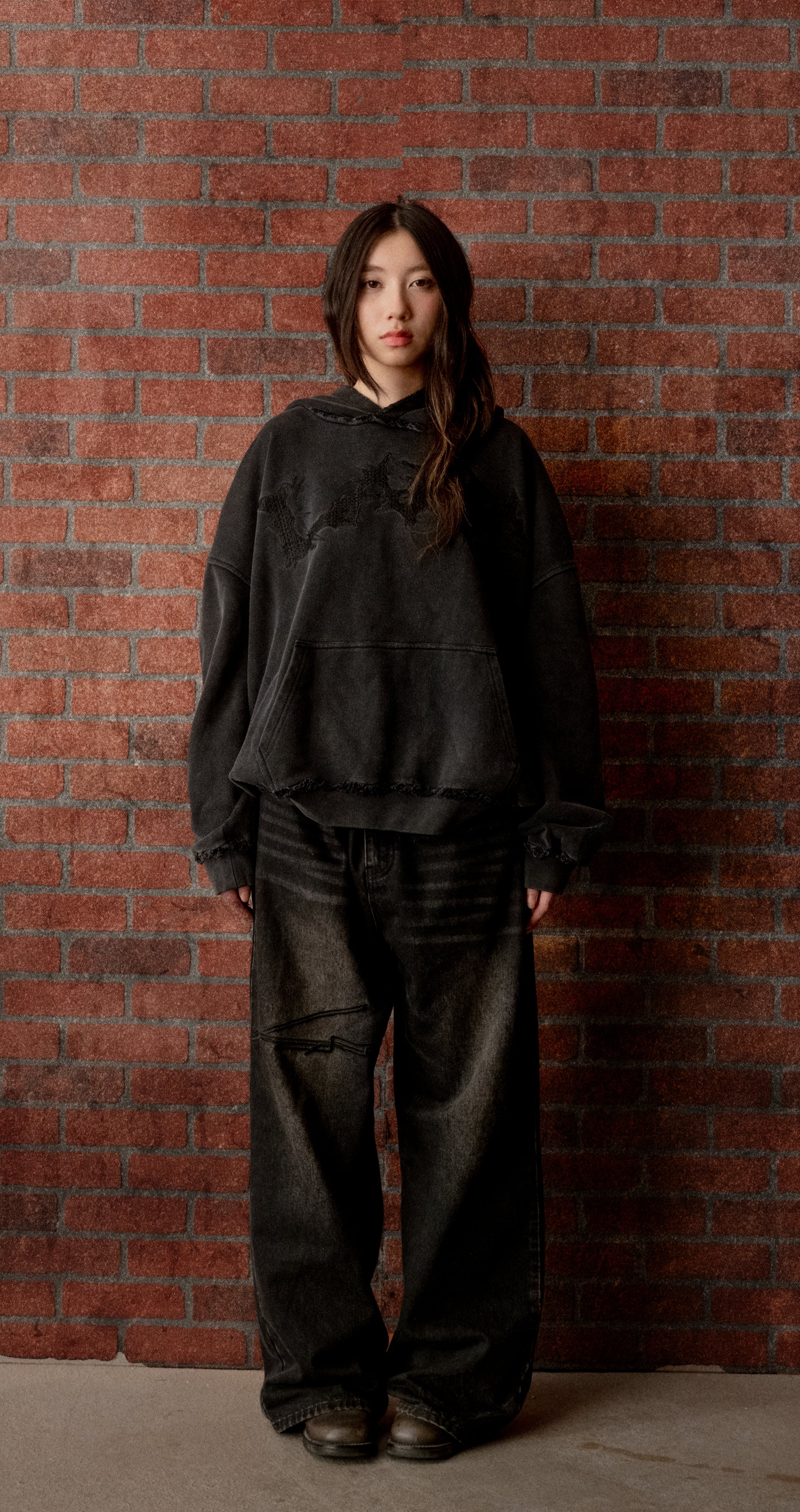 each piece is uniquely treated with a washed-down tone, raw distressing, and standout embroidery.